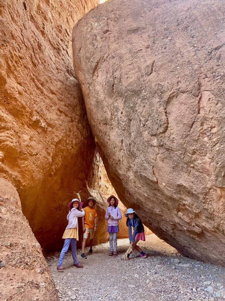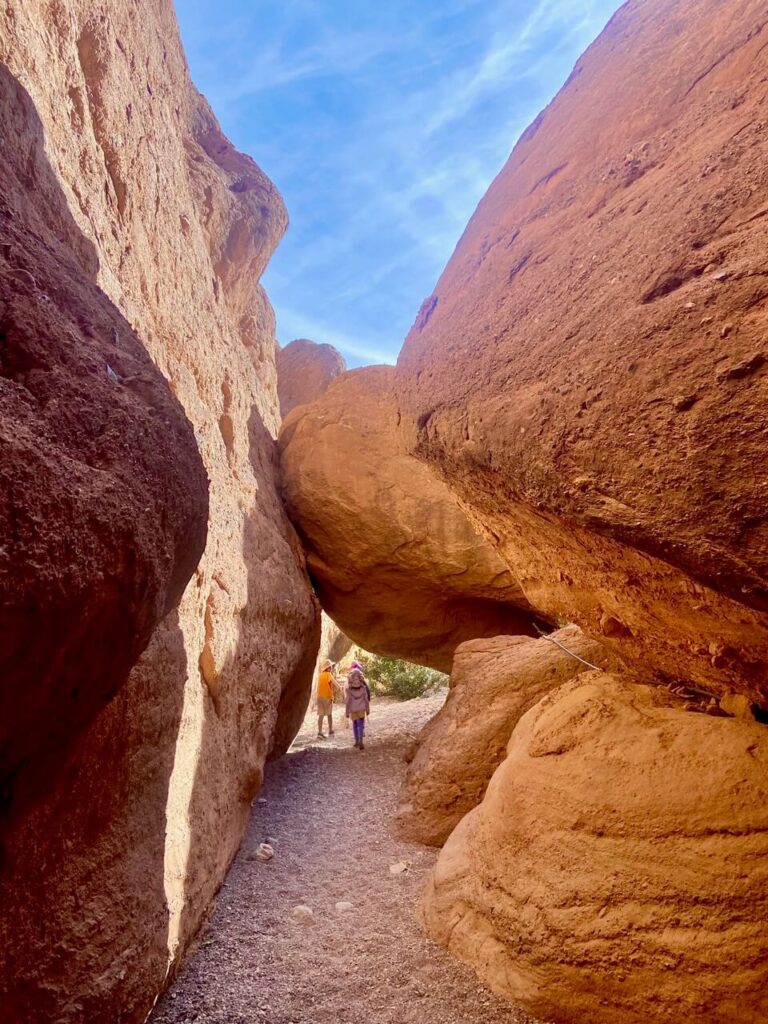 But if you want to hike with kids, we definitely recommend Dades Valley and the Monkey Fingers Canyon Hike. The full Monkey Fingers Canyon is 8km, but the actual gorge hike is only about 1km or so, and then you can loop back the same way you came, or along the ridge of the canyon. This hike is not very difficult, but very fun and requires some clambering, taking you through narrow crevices and under boulders, and one instance we actually had to get on our hands and knees. Big S and Lil S and their travel friends had an absolute blast.