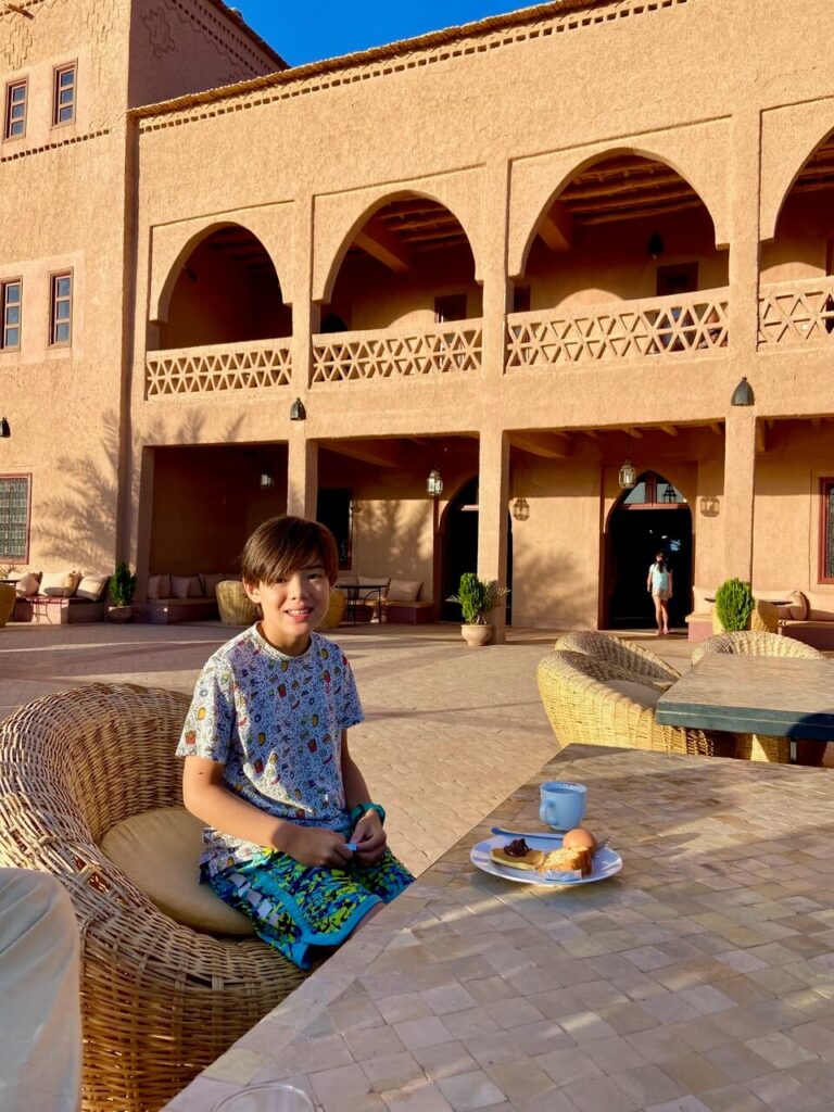 Our stay at Kanz Erramel was nearly identical to our stay at a luxury desert camp, in terms of how close to the desert we were! We literally pulled up in front of the hotel, and the kids kicked off their shoes and jumped into the dunes. They were out in the desert every chance they got – playing in the sand until dark and out there again before breakfast. It really felt like the world’s biggest sandbox and the kids could not get enough of this.