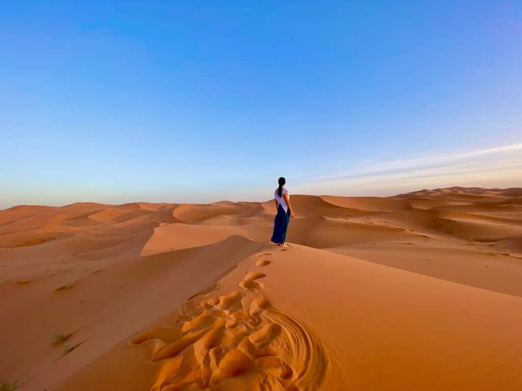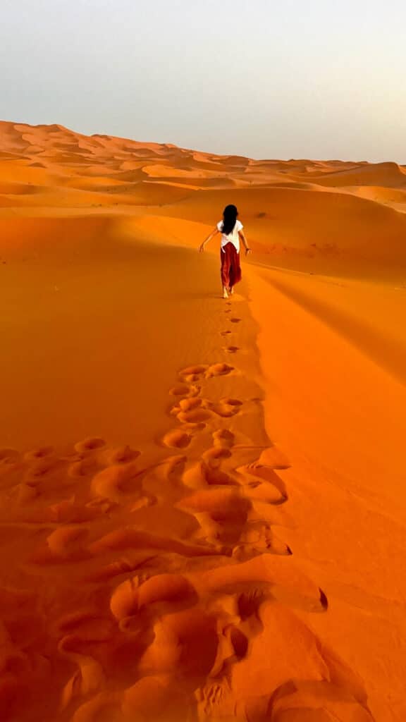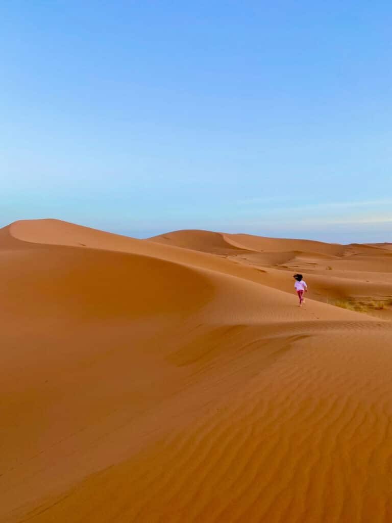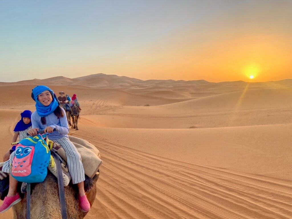 Visiting the Sahara desert in Morocco was a core memory, a unique adventure, a photographer’s (and Instagrammer’s) dream, and Big S and Lil S’s most favourite part of Morocco. You can sample the Sahara straight from the hotels and luxury camps near Merzouga, the Moroccan town at the foothill of the desert (which we did, too!) The dunes are impressive from any angle, and almost all accommodations offer camel treks, 4×4 tours, ATV rides, and various other desert experiences.