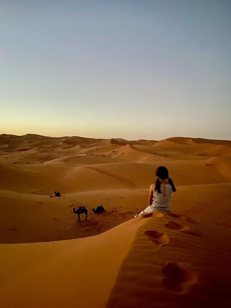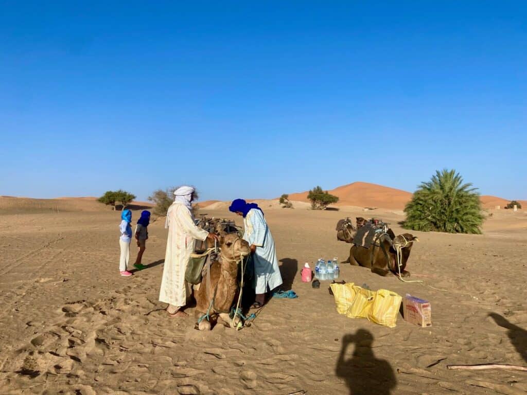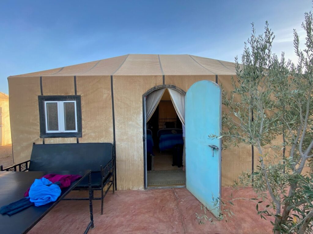The price for our 2 night trek with Sahara Camel Trips (as of 2025) was 150 Euros per person (no discount for kids). This is for 1 night in a standard tent, and 1 night in a luxury tent.